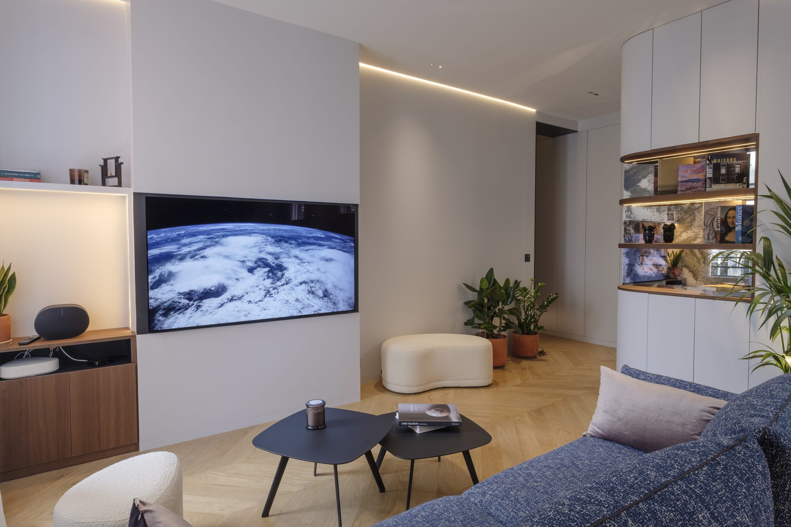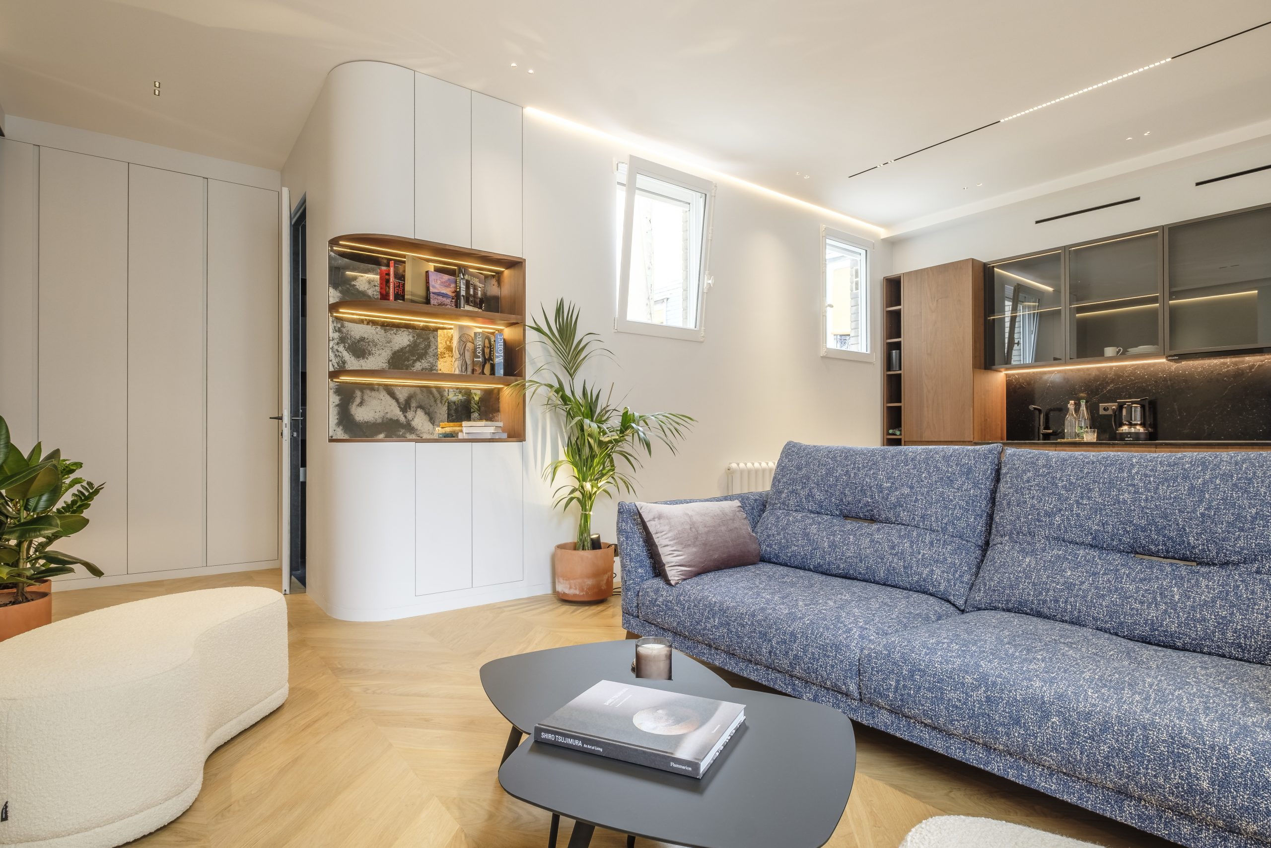 Architecture des éclairages, choix des matériaux, plâtrerie, plomberie, électricité, carrelage, peinture.